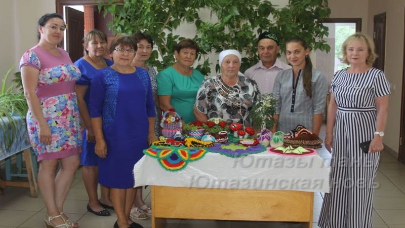 В кружке рукоделия не только занимается сама, но обучает односельчанок вязанию пенсионерка Сююмбикэ Абдулловна Габдуллазянова. Ее наполненные яркими цветами работы полны жизнелюбия сродни своему творцу. Оригинальные вязаные вазы с цветами и ягодами, необычные по форме салфетки, фигурные тапочки выполнены с предельной тщательностью и старанием. По словам Сююмбикэ-ханум, вязанию она выучилась еще в детстве и не по своей воле. В ее родном Атнинском районе среди женщин было принято вязать шали. Когда Соембикэ пошла в первый класс, мама вынужденно усадила ее вязать к ним кромки, поэтому вместо того, чтобы играть на улице, девочке приходилось часами корпеть над вязанием. Однако освоенное по принуждению дело со временем не только переросло в увлечение, но и сослужило добрую службу, принося определенную пользу. Когда росли дети, она сама вязала для них теплые кофты и носочки. После выхода на пенсию времени прибавилось, особенно зимой, когда нет огородных работ, и теперь она может позволить себе вязать не только вещи для но'ски, но и для души. Кроме вязания Сююмбикэ-ханум также неплохо вышивает и шьет. Ну а касательно вязания, то связать она может практически все, вплоть до пальто, по крайней мере такой опыт у нее имеется.