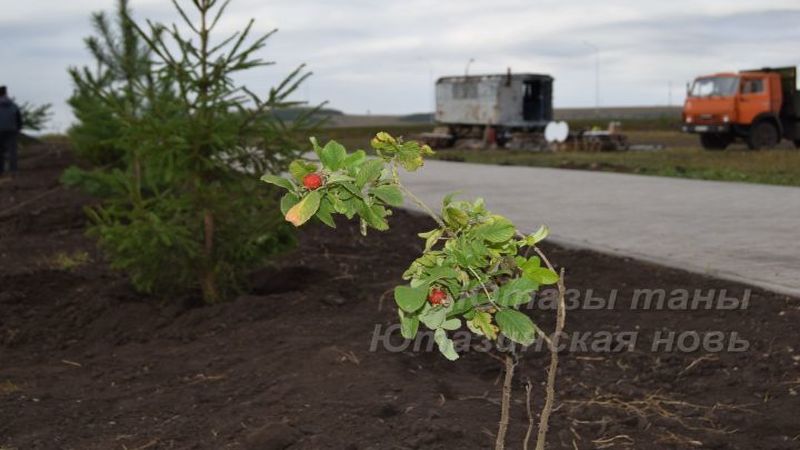 В эти дни продолжается посадка зеленых насаждений по периметру будущего парка. В основном это саженцы хвойных деревьев и шиповника. В центральной части парка закладываются дорожки из серой брусчатки, по краям которых монтируются наземные светильники.
