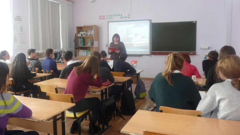 Затем ребят познакомили с документальным произведением Алеся Адамовича и Даниила Гранина «Блокадная книга», которая стала нерукотворным памятником ленинградцам. Эта книга-повествование о городе-мученике, в ней собраны живые свидетельства блокадников. Подросткам рассказали, какую колоссальную работу проделали авторы, записав воспоминания людей переживших это страшное для Ленинграда и его жителей время. Для писателей было важно выяснить не только историческую картину того периода, но и состояния людей, их мысли и чувства, желания. Участникам мероприятия были предложены для просмотра буктрейлер «Блокадная книга», видео «Блокадный трамвай», а также мультимедийная презентация. Многочисленные видеокадры, воспоминания блокадников-ленинградцев, описанные в книге, помогли и полноценно раскрыть эту непростую тему. Мероприятие закончилось чтением стихотворения О. Берггольц «Нам от тебя теперь не оторваться», голос которой по радио в блокаду объединял обессиленных и истощенных людей. Ребята познакомились с трагической судьбой ленинградцев, и увидели, как проявлялось мужество и патриотизм, гордость, преданность и любовь к Родине.