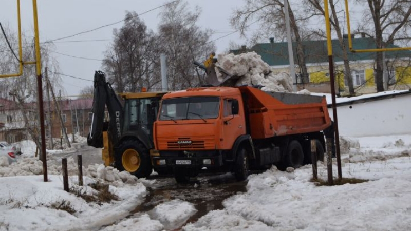 После вывоза скоплений снега с главных улиц поселка настала очередь дворов.