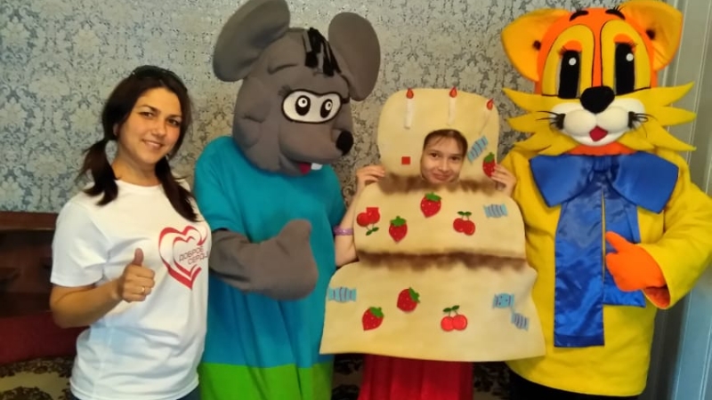 В рамках проекта «Доброе сердце» волонтеры РДК посетили ребенка – инвалида. Добрый кот Леопольд и его друг Мышонок принесли радость и веселье в дом маленькой девочки с ограниченными возможностями здоровья. Вместе пели песни, играли в игры, отгадывали загадки. От спонсоров были переданы подарки.