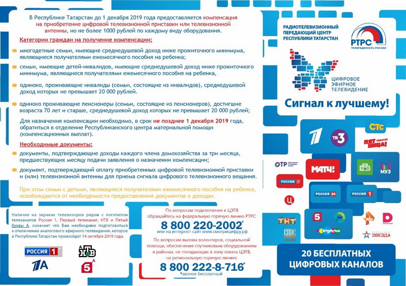 14.10.2019 г. в Республике Татарстан будет прекращено вещание федеральных телеканалов в аналоговом формате