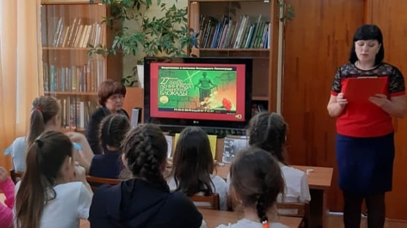 23 января для учащихся 5–х классов в Центральной детской библиотеке был проведен урок мужества “Страницы блокадного Ленинграда”. Заведующая библиотекой Агафонова Ю.И. рассказала школьникам о тяжелых испытаниях, выпавших на долю жителей осаждённого Ленинграда: о голоде и холоде, о детях и женщинах, работающих наравне с мужчинами, о самых героических страницах войны — обороне и снятии блокады Ленинграда. Далее с большим интересом ребята прослушали историю о ленинградской девочке Тане, которая за время блокады потеряла всех своих близких. Рассказ о дневнике одиннадцатилетней школьницы Тани Савичевой нельзя слушать без боли и содрогания. Особыми чувствами учащиеся прониклись к судьбе Тани Савичевой. Девять страниц записной книжки, написанные детской рукой, поведали миру о трагедии, которая произошла только в одной из многих ленинградских семей. Дневник Тани Савичевой стал одним из символов Великой Отечественной войны. Также огромное впечатление на ребят произвёл рассказ о норме хлеба блокадников, о том, что значили в то время хлебные карточки. Урок сопровождался показом слайд презентации и видеороликов о блокадном Ленинграде “Полное снятие блокады”, “Помним”. Далее мероприятие продолжилось Всероссийской акцией памяти «Блокадный хлеб». Ключевым символом акции памяти «Блокадный хлеб» является кусочек хлеба весом в 125 граммов — именно такая минимальная норма выдачи хлеба была установлена во время блокады Ленинграда. Всем участникам акции было предложено на несколько мгновений забыть о сегодняшнем дне, вспомнить ленинградцев, испытывающих голод и холод, затем попробовать представить себя жителями блокадного Ленинграда, попробовав кусочек «блокадного хлеба». Кусочек «блокадного хлеба» — это символ, и главное — это наша память о героических и трагических событиях Великой Отечественной войны, о мужестве и стойкости ленинградцев. К данному мероприятию сотрудники детской библиотеки подготовили книжную выставку - памяти «900 дней славы и бессмертия», где все присутствующие могли познакомиться с книгами и рассказами о блокаде Ленинграда и взять их для домашнего чтения. Завершилось мероприятие минутой молчания в память о блокадных ленинградцах и защитниках города-героя. Зажженная свеча символизировала память всех погибших в годы Великой Отечественной войны.