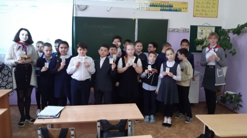 А главное, из чего пекли этот хлеб, какой ценой он доставался, и выдавали его строго по карточкам, по 125 граммов в сутки. Дети посмотрели видео "Блокада глазами детей. Детей того времени". Ученикам были продемонстрированы карточка на хлеб и блокадный паёк – кусочек чёрного хлеба, весом 125 граммов. Также дети поиграли в игры "Азбука Морзе" и "Последнее послание", выполняли задания. В конце мероприятия было сделано фото на память.