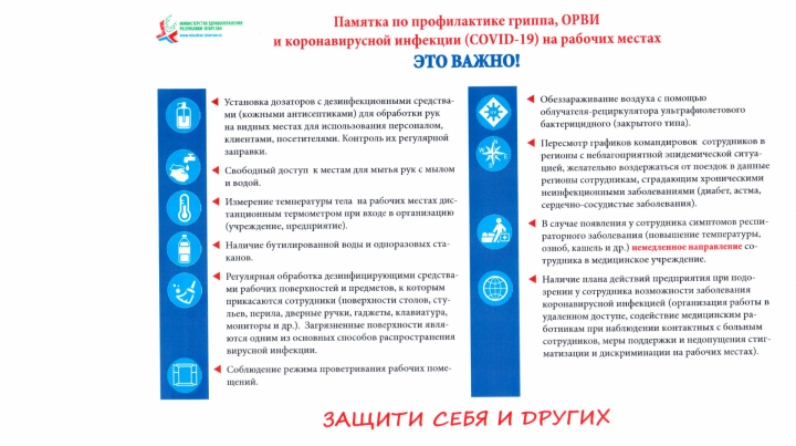 Роспотребнадзор подчеркивает, что самое важное — поддерживать чистоту рук и окружающих поверхностей — к примеру, смартфона. Руки ведомство советует мыть мылом или использовать для дезинфекции специальные средства, которые нужно всегда носить с собой. Рекомендуется не касаться немытыми руками рта, носа или глаз и максимально сократить прикосновения к любым предметам и поверхностям в людных местах и общественном транспорте. На работе Роспотребнадзор советует регулярно чистить клавиатуру компьютера и другие поверхности, к которым вы прикасаетесь.
