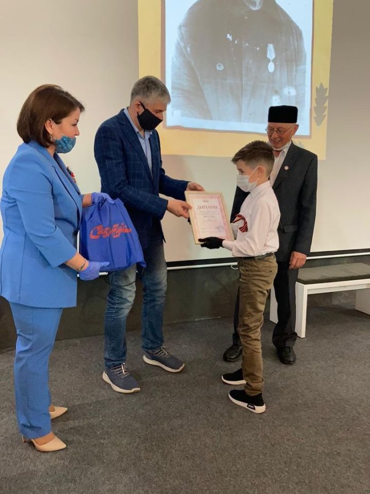 24 июня в Музее-мемориале Великой Отечественной войны в Казанском Кремле состоялось награждение победителей республиканского конкурса “Годы Великой Отечественной войны в моей родословной”, организованного редакцией журнала “Сабантуй”. Среди школьников, создавших семейную родословную и написавших сочинение о солдате-участнике Великой Отечественной войны, есть и ученик Уруссинской средней школы Айнур Гареев. К слову, конкурсная комиссия приняла 94 работы. Победителей поздравил доктор исторических наук Файзельхак Ислаев. Он вручил детям памятные подарки и дипломы победителей. Ильмира ГАЛИЕВА