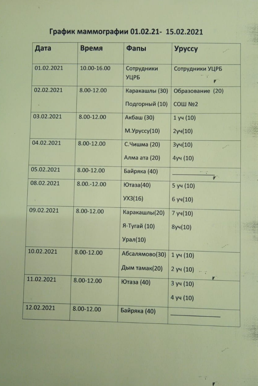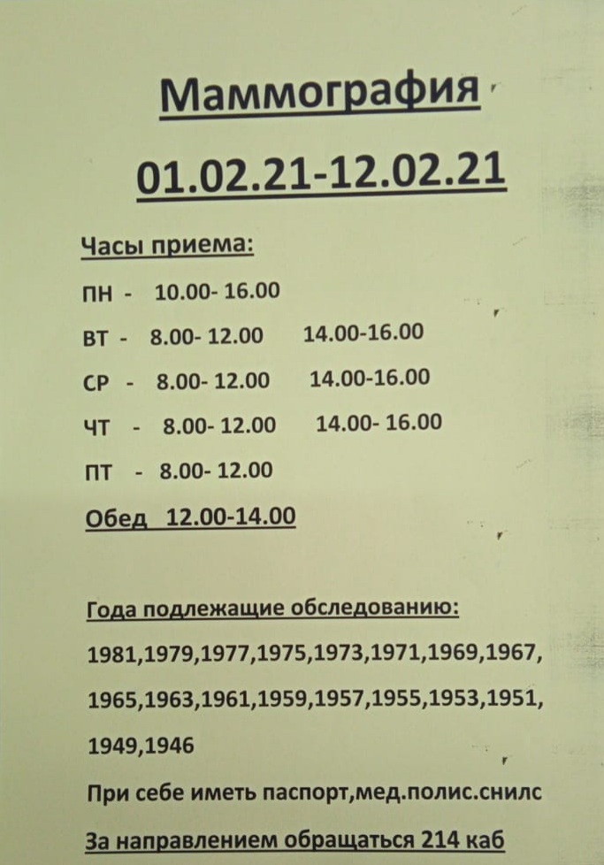 Маммограф будет находиться в здании Уруссинской ЦРБ напротив входа в рентгенологическое отделение. Прием граждан будет осуществляться по графику!