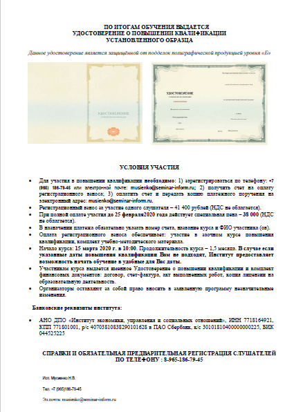 По вопросам обращаться в отдел по работе с клиентами по многоканальному телефону: +7 (965) 186-79-45 или по электронной почте: musienko@seminar-inform.ru