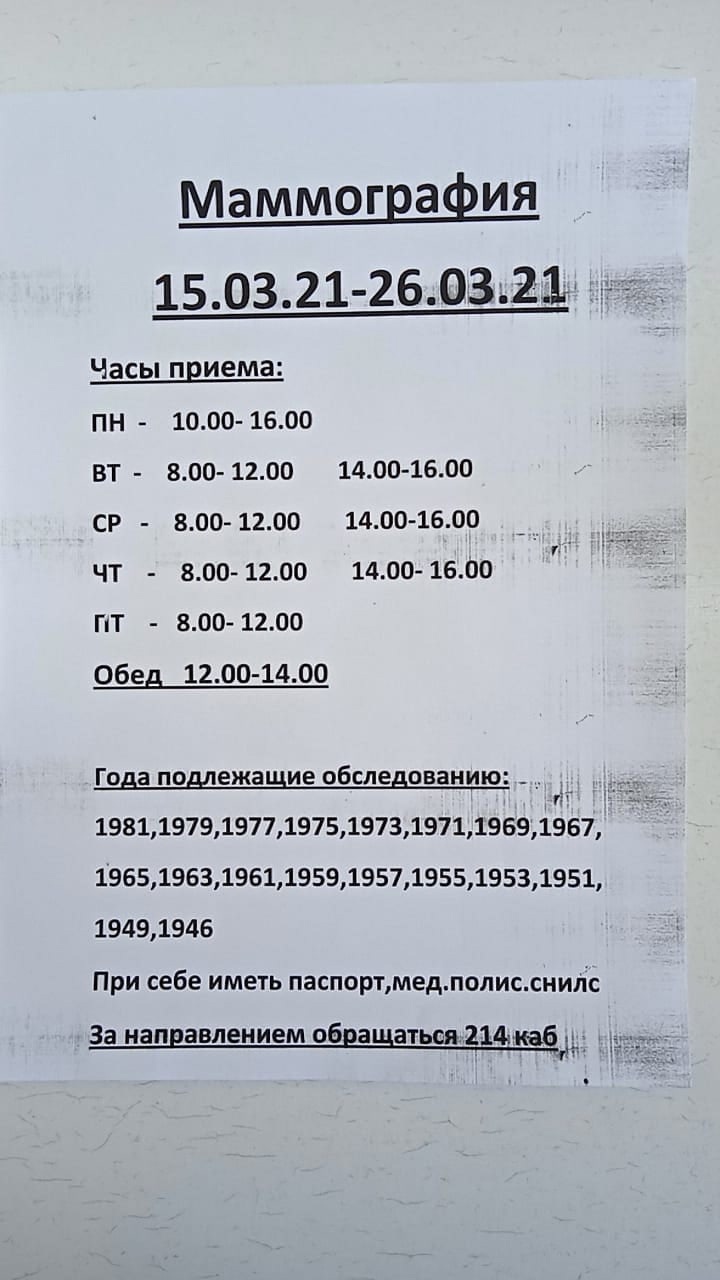 В рамках ДИСПАНСЕРИЗАЦИИ начинается возобновляется проведение МАММОГРАФИИ.