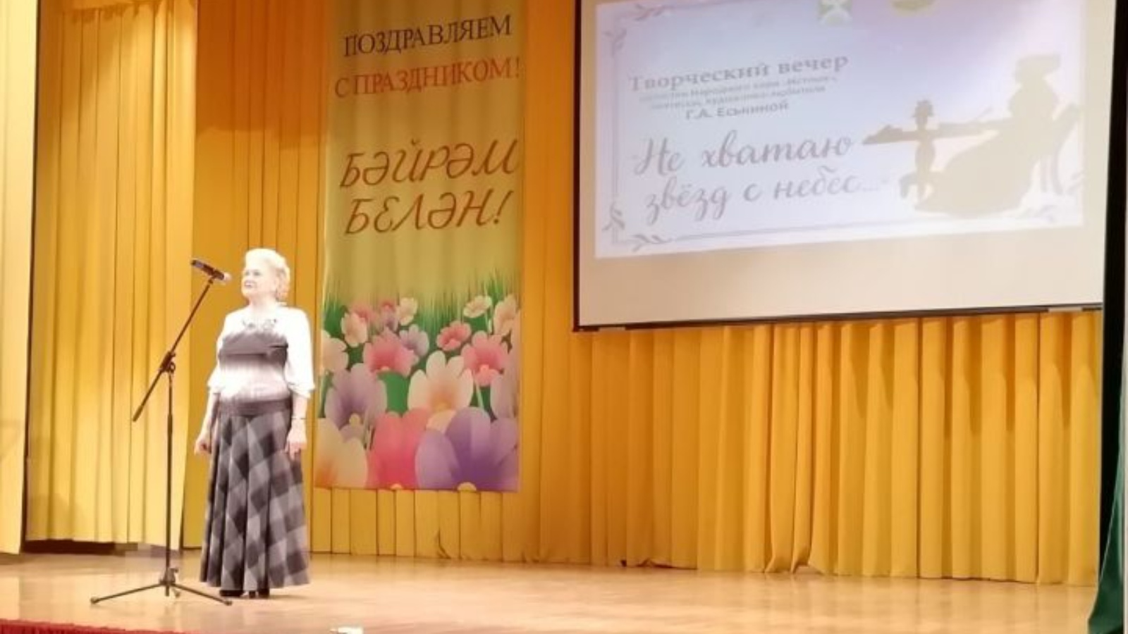 Собственно, в основе данного мероприятия лежало желание нашей героини поделиться с близкими ей по духу людьми своими мыслями, своей работой. Виновницу торжества со славной датой поздравили артисты районного Дома культуры – народный коллектив ансамбля танца «Ютазы йолдызлары», хореографический коллектив «Мечта», народный хор ветеранов «Истоки», Геннадий Гребенюк, Чулпан Зайдуллина, Гульчачак Валиева, Геннадий Чернокозов…
