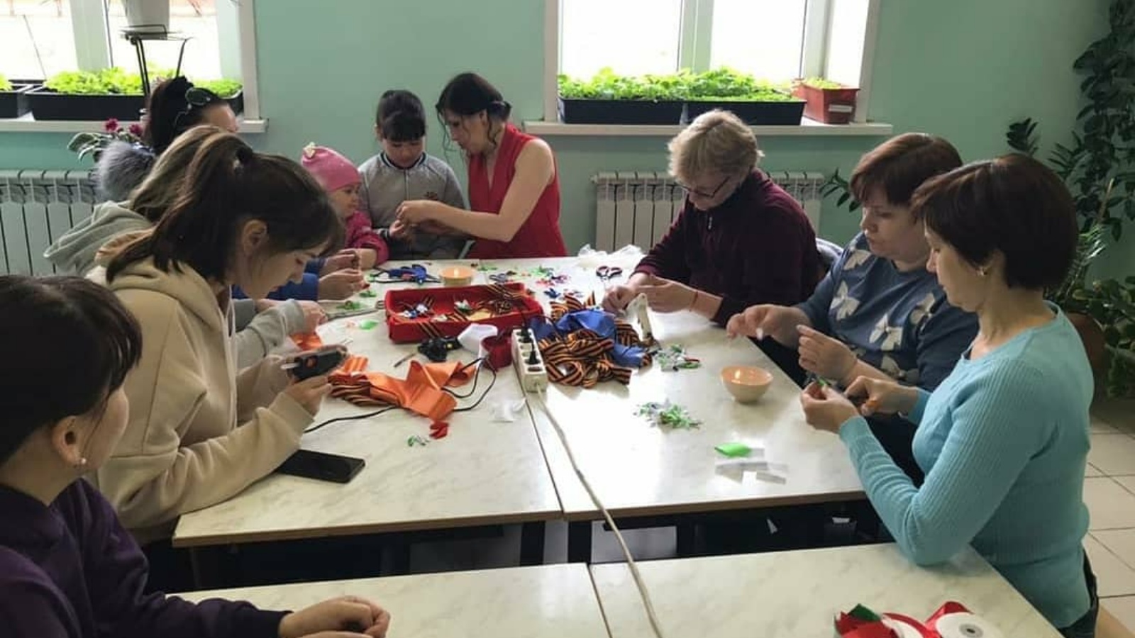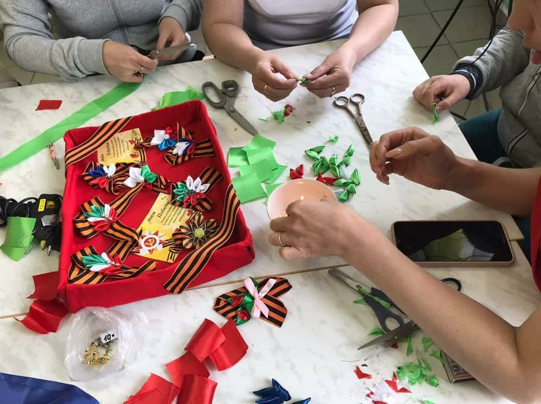Накануне 76-й годовщины Победы в Великой Отечественной войне педагоги Центра детского творчества совместно с Центральной библиотекой и местным отделением ВПП "Единая Росси" провели мастер-класс по изготовлению брошей из георгиевских лент.