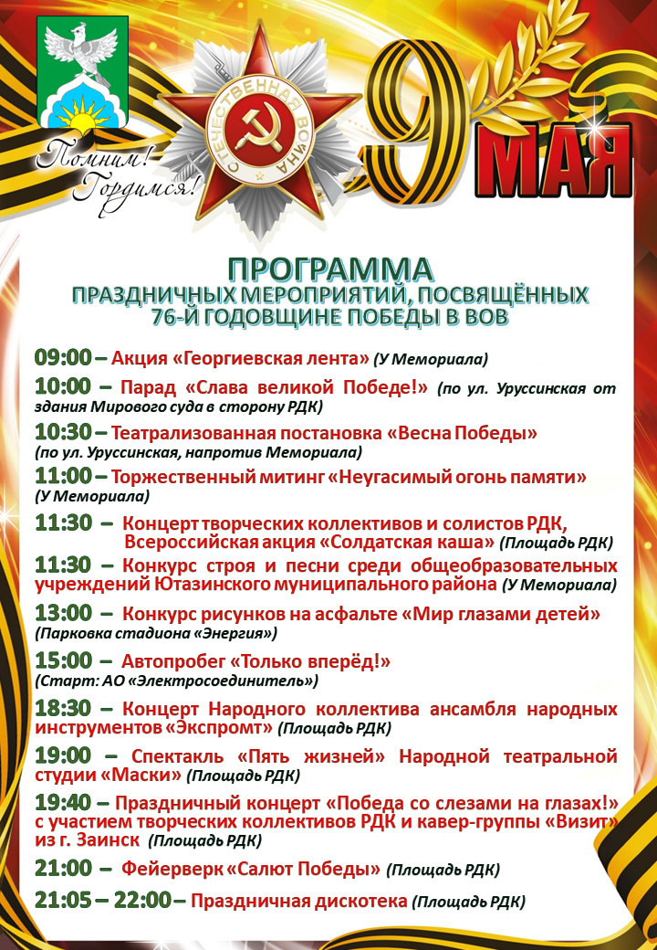 Программа праздничных мероприятий, посвящённых 76-й годовщине Победы в Великой Отечественной войне