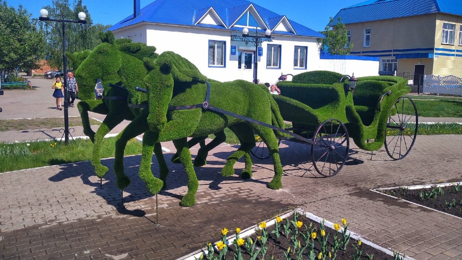 Сегодня в парках и скверах пгт Уруссу установлены красивые топиарные фигуры.