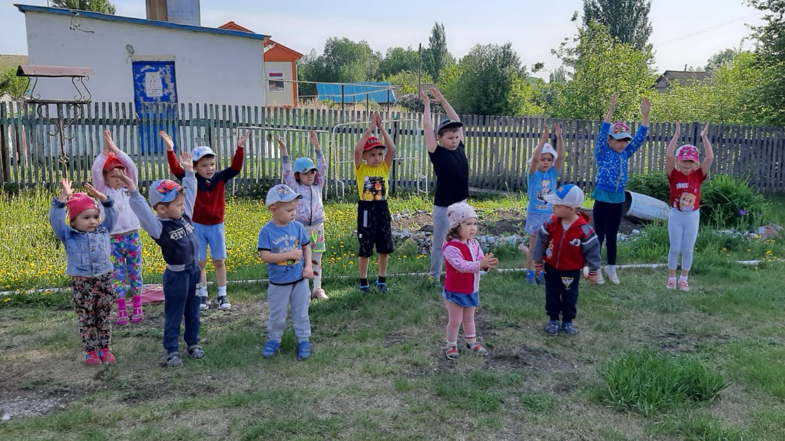 У детей день начинается с зарядки на свежем воздухе, так как она является оновополагающим средством оздоровления и воспитания.Утренняя гимнастика является неотьемлемым организующим моментом в режиме дня, приучает детей к дисциплине и порядку.Дети укрепляют здоровье и идут в ногу со временем