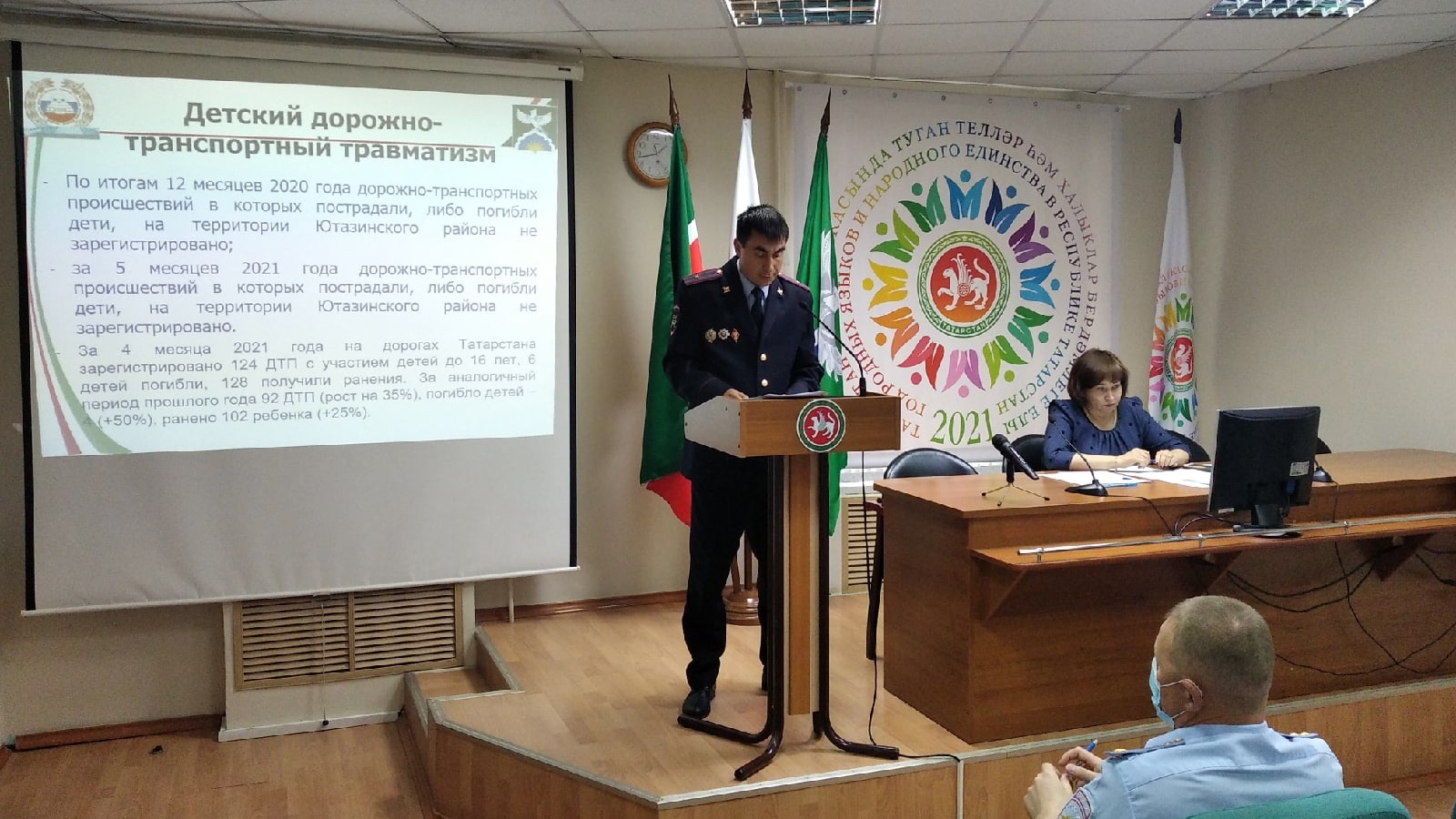 Марс Гареев, начальник ОГИБДД отдела МВД России по ЮМР, в своем докладе сообщил, что по итогам 12 месяцев 2020 года и 5 месяцев 2021 года дорожно-транспортных происшествий, в которых пострадали дети на территории района не зарегистрировано.