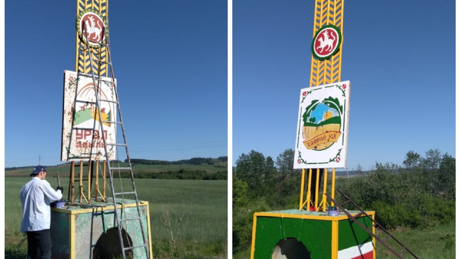 Обновлена стела при въезде в н.п. Урал. Посажены цветы возле административного здания Каракашлинского сельского поселения.