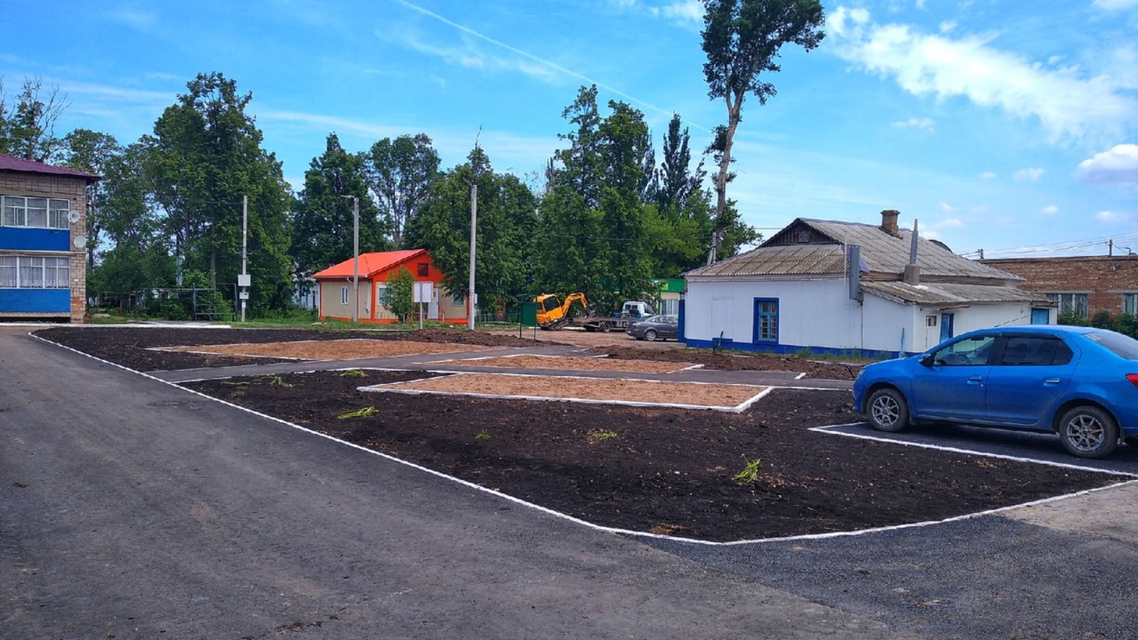 Во дворах установлены бордюры, построены тротуары,входные группы, детская площадка и площадки под коврочистки. Проведена укладка асфальта, завезён чернозём, ведутся работы по установке освещения. Проводится демонтаж старого забора по всему периметру дворов. Дополнительно ещё будут построены тротуары, а также будет установка малых архитектурных форм на детской площадке, скамеек, урн, сушилок для белья и коврочисток на территории дворов. Работы продолжаются..