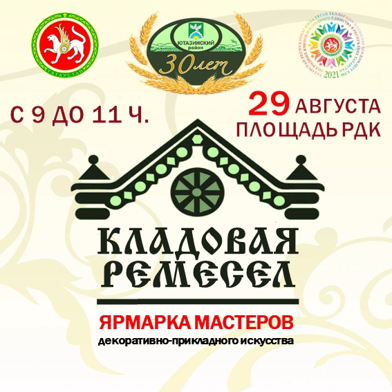 Приглашаем мастеров декоративно-прикладного искусства принять участие в ярмарке мастеров «Кладовая ремёсел», которая состоится 29 августа в рамках проведения праздничного мероприятия ко Дню Республики Татарстан и 30-летию Ютазинского района.