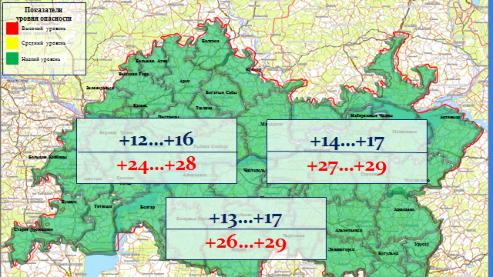 В период с 14 по 20 августа 2021 года на территории Республики Татарстан местами сохранится высокая пожарная опасность лесов (4 класс), в отдельных районах ожидается чрезвычайная пожарная опасность лесов (5 класс)