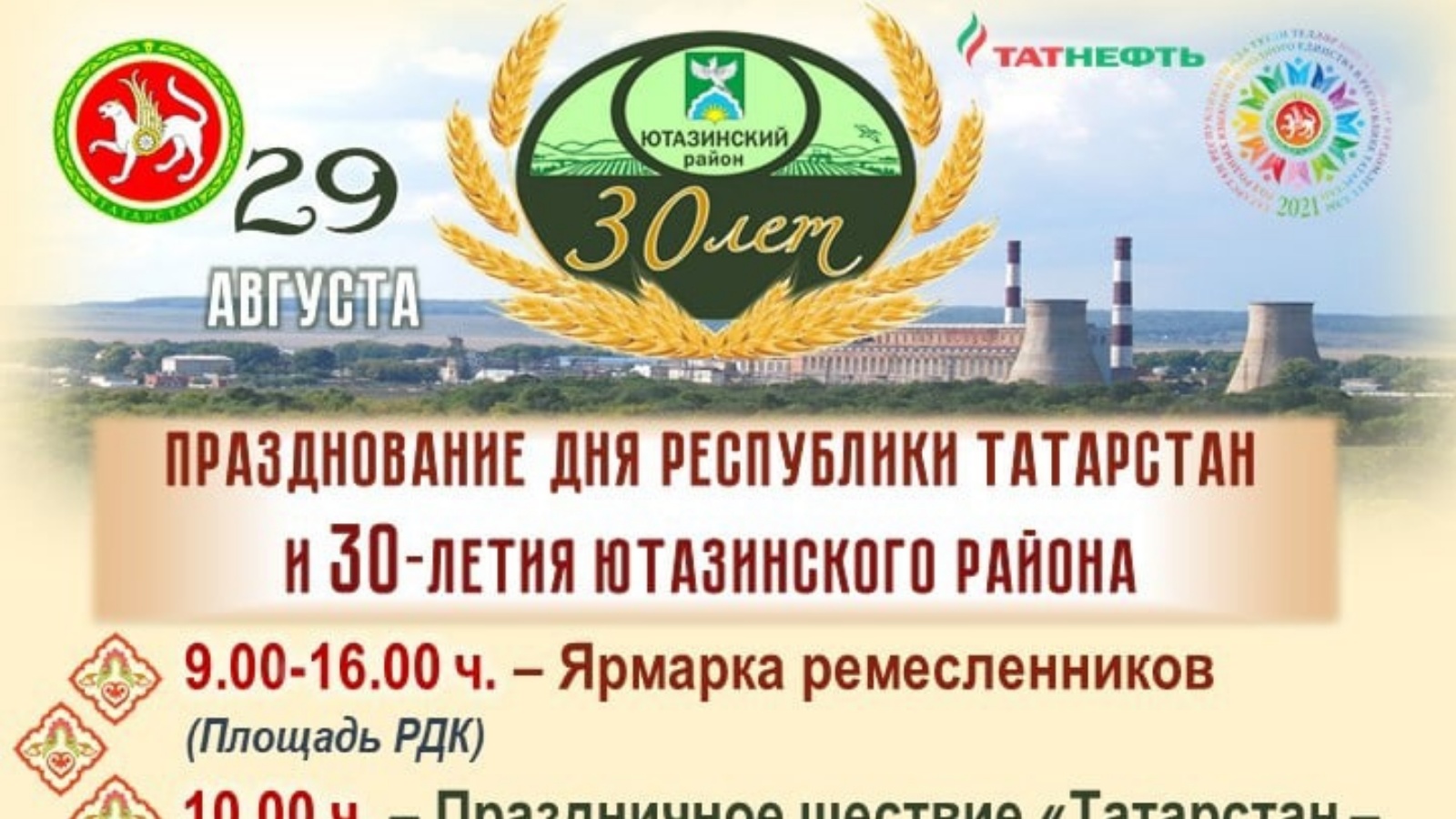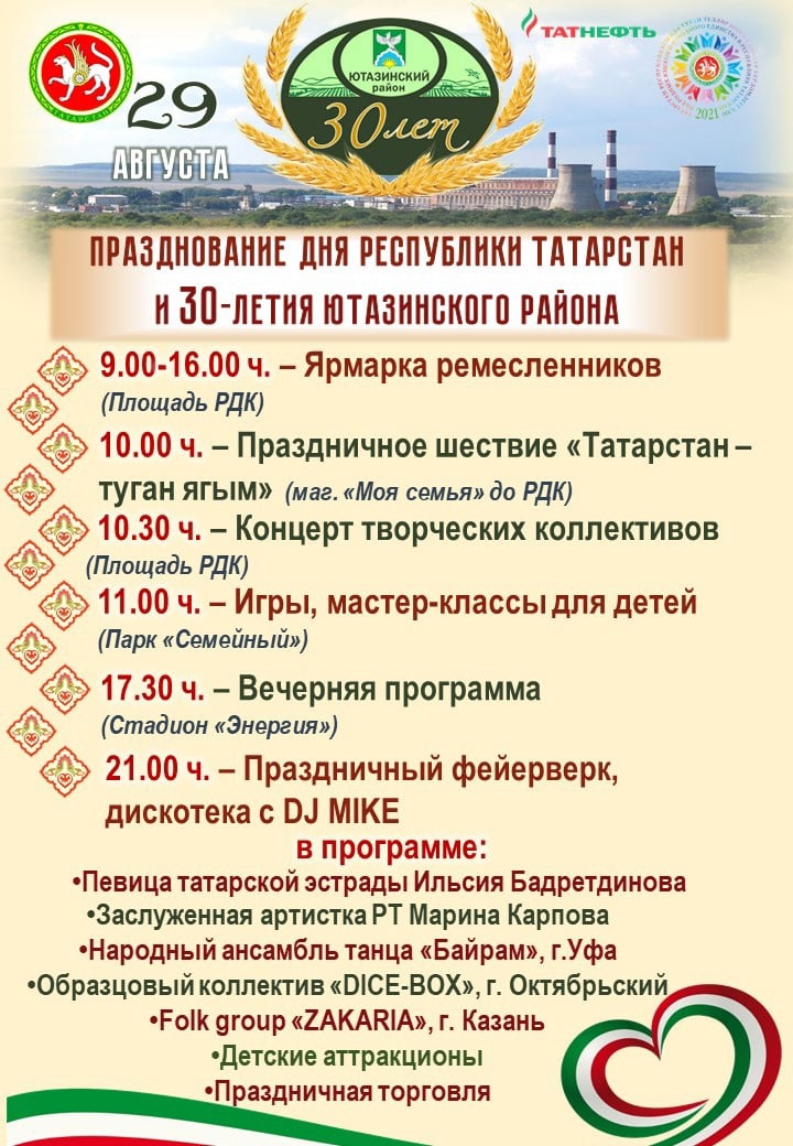 ПРОГРАММА ПРАЗДНОВАНИЯ ДНЯ РЕСПУБЛИКИ ТАТАРСТАН И 30-ЛЕТИЯ ЮТАЗИНСКОГО РАЙОНА
