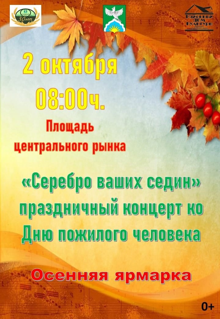 Уважаемые жители! 2 октября на площади центрального рынка состоится Праздничный концерт ко Дню пожилого человека и осенняя ярмарка