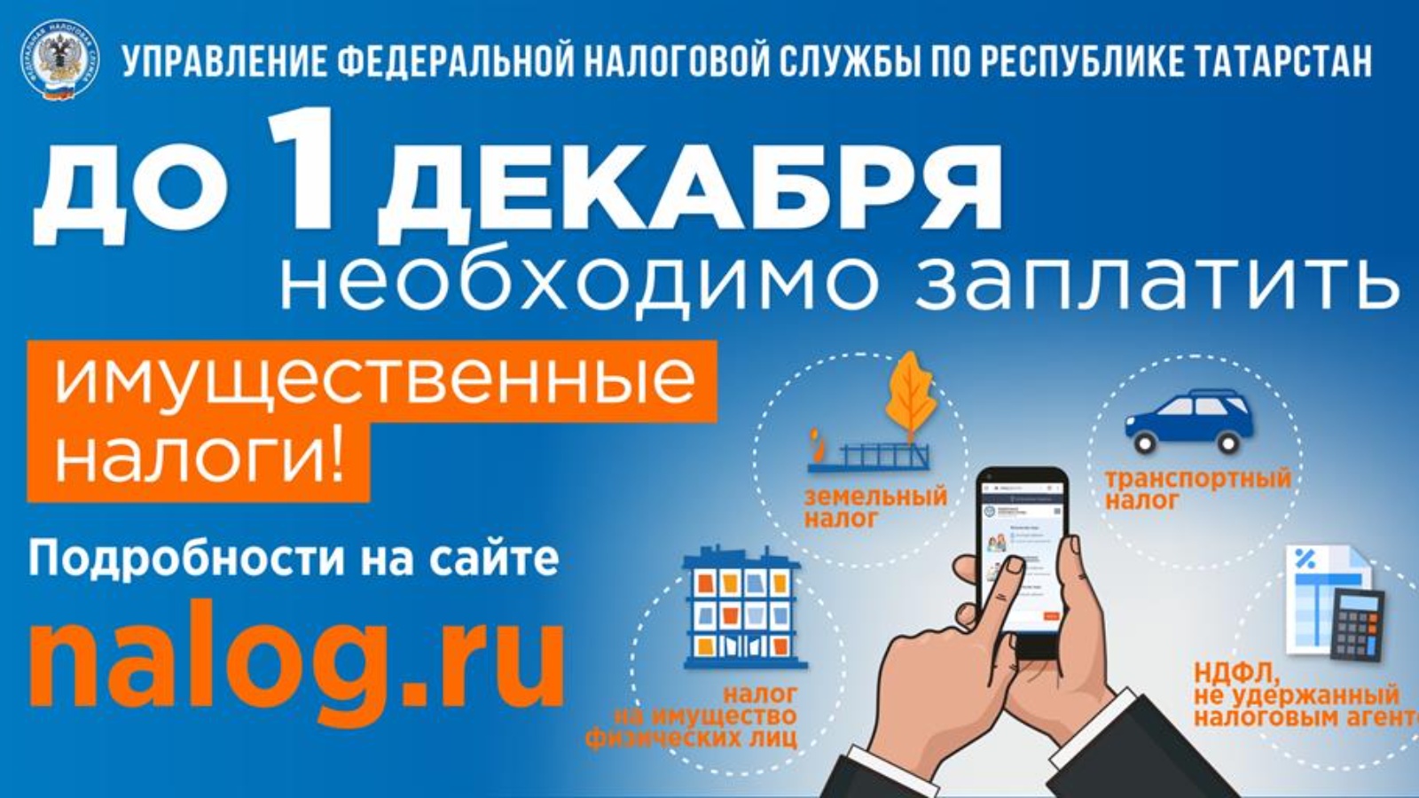 УПРАВЛЕНИЕ ФЕДЕРАЛЬНОЙ НАЛОГОВОЙ СЛУЖБЫ НАПОМИНАЕТ, ЧТО ДО 1 ДЕКАБРЯ НЕОБХОДИМО ЗАПЛАТИТЬ ИМУЩЕСТВЕННЫЕ НАЛОГИ