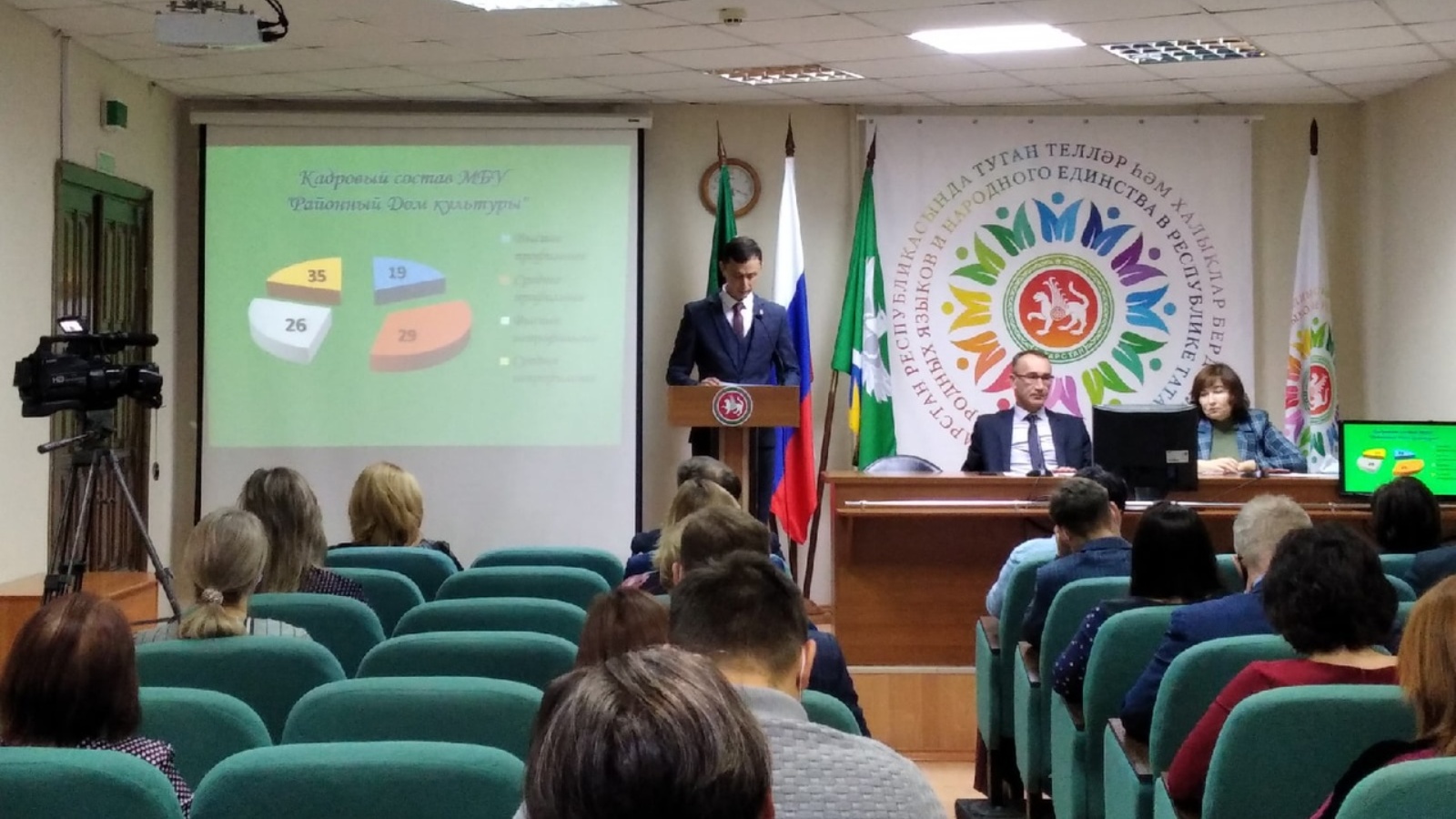 Директор Районного дома культуры Рустам Абдурахманов выступил с отчётом о деятельности МБУ «РДК», сельских домов культуры и клубов за 9 месяцев 2021 года.