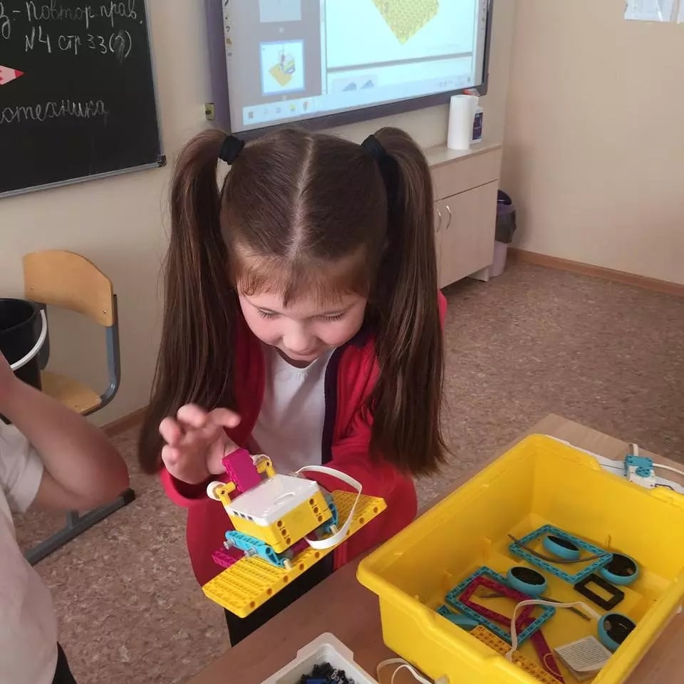 Для того, чтобы дети легко понимали робототехнику и программирование, могли углубленно изучать математику и физику в средней школе, мы используем обучающий набор LEGO education SPIKE Prime. Набор позволяет строить алгоритмы с помощью блок-схем и наблюдать, как картинки на экране превращаются в движения и действия.
