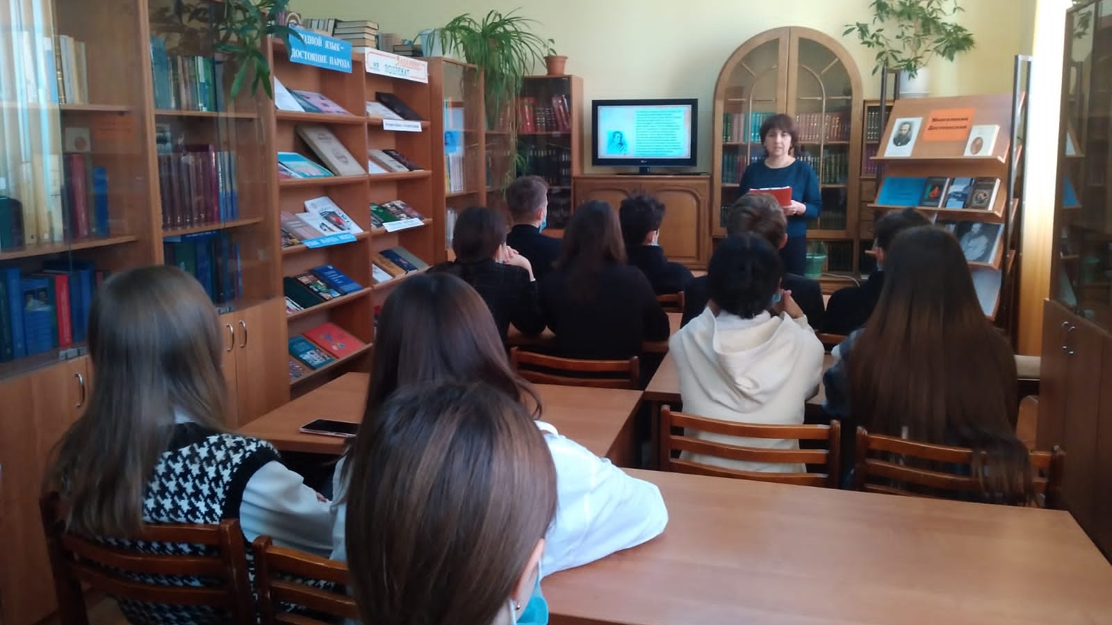 В рамках празднования 200-летия со дня рождения Федора Михайловича Достоевского сотрудниками Центральной библиотеки была проведена литературная гостиная «Путешествие по произведениям Ф.М. Достоевского» для учащихся 8в класса Уруссинской школы №3. Заведующая отделом обслуживания Гульшат Ризванова познакомила с основными моментами его биографии. Вниманию участников мероприятия были представлены видеопрезентация «Гений и пророк России» и буктрейлеры по его книгам, посмотрели фрагменты экранизаций самых известных его произведений, прослушали фрагмент записи живого звука Ф.М. Достоевского из «Пушкинской речи». Самолетова Кира прочитала стихотворение А.С. Пушкина «Пророк». По окончании мероприятия ребята с помощью викторины «Знаете ли вы Достоевского?», проверили свои знания.