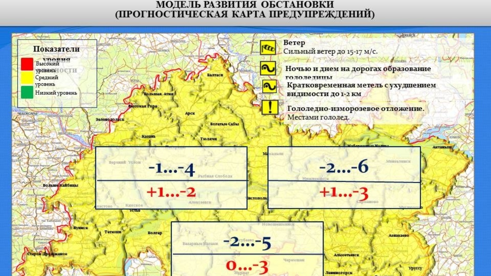 Облачно, днём с прояснениями. Ночью снег, мокрый снег. Днём местами небольшой снег, мокрый снег. Ночью в отдельных районах кратковременная метель, гололёд. Ветер юго-западный, южный 6-11 м/с, ночью местами порывами 15-17 м/с, днём до 14 м/с. Минимальная температура воздуха ночью -2..-6˚. Максимальная температура воздуха днем +1..-3˚. На дорогах местами гололедица.