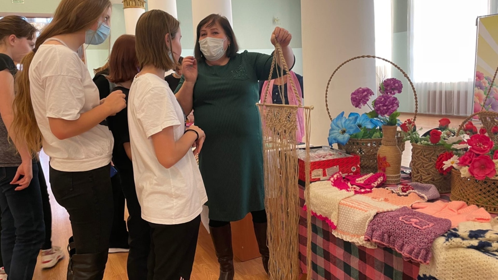 Особенность данной выставки в том, что любой желающий может не только посмотреть изделия ручной работы, но и поучаствовать в мастер-классах. Так ребята попробовали себя в изготовлении глиняной аромалампы, объёмных картин, а также плели из джута.