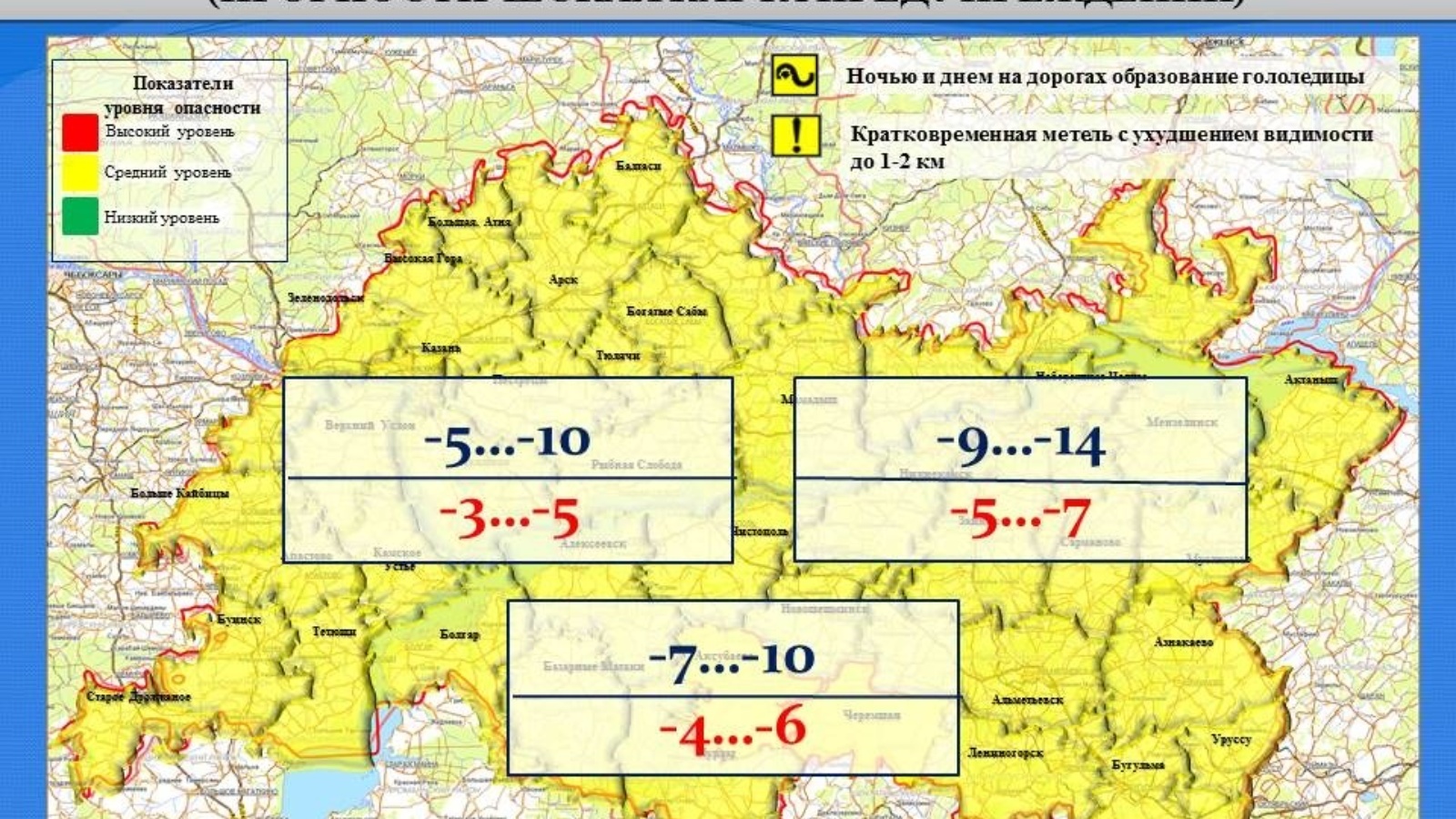 Облачно с прояснениями. Местами небольшой снег. Ветер южный с переходом на северо-восточный 5-10 м/с. Минимальная температура воздуха ночью и утром -9..-14˚. Максимальная температура воздуха днем -5..-7˚. На дорогах гололедица.