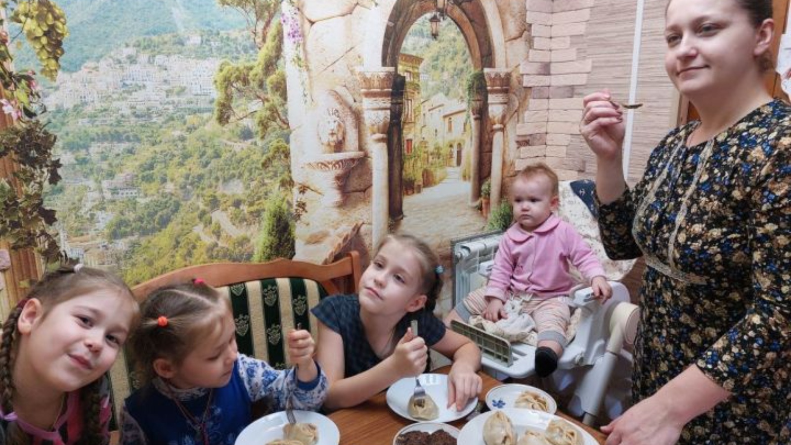 Чтобы обсудить сценарий предстоящих съемок, иду к ней в гости. Ирина накрывает на стол, дочери помогают маме: нарезают овощи на салат, готовят посуду. Ее девочки - неизменные помощницы в любом деле. Она счастлива от того, что их много и они все делают вместе. Вместе готовят обеды, изготавливают сыры и различные молочные продукты, пекут ароматный домашний хлеб и вкусные торты. Ирина не упускает возможности научиться чему-то новому, во время весенней пандемии отучилась на онлайн-курсах по выпечке тортов, сейчас осваивает пекарское дело по выпечке хлеба. Через интернет научилась изготавливать сыры, овладела секретами мыловарения. Для этого летом они всей семьей заготавливают различные сборы из трав.