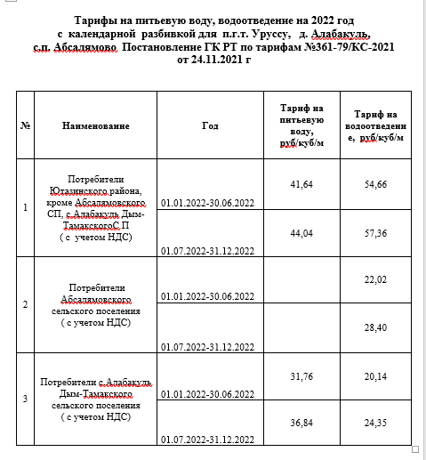 Тарифы на питьевую воду, водоотведение на 2022 год