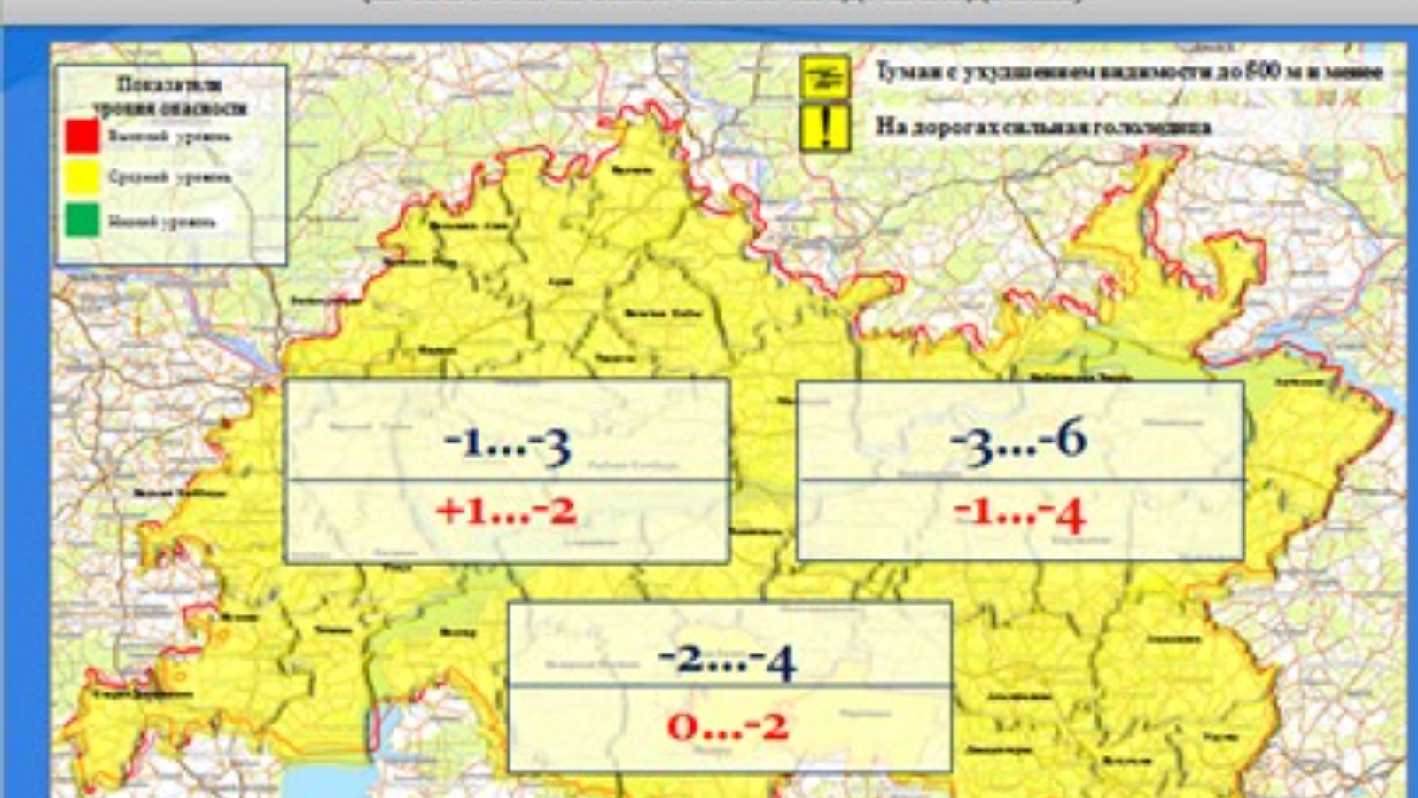 Облачно. Местами небольшой снег, мокрый снег. В отдельных районах туман. Ветер юго-восточный 5-10 м/с, местами порывами до 13 м/с. Минимальная температура воздуха ночью -3..-6˚. Максимальная температура воздуха днем -1..-4˚. На дорогах гололедица, местами сильная.