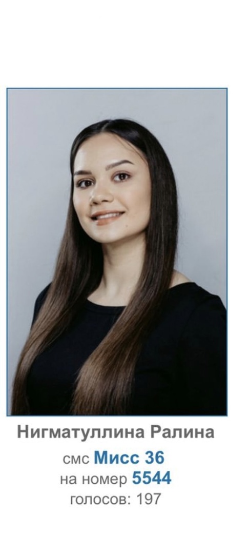Наша землячка Нигматуллина Ралина Руслановна - солистка Народного коллектива ансамбля танца «Ютазы йолдызлары», выпускница Уруссинской гимназии, участвует в республиканском конкурсе «Мисс Татарстан-2022». Она является финалисткой конкурса и ей необходима наша помощь. На данный момент проходит голосование за титул «Мисс зрительских симпатий». Для того, чтобы проголосовать за неё, необходимо отправить на номер «5544» кодовое слово «Мисс 36». Один и тот же номер может отправлять неограниченное количество голосов. Голосование длится до 00-00 часов 28 января.