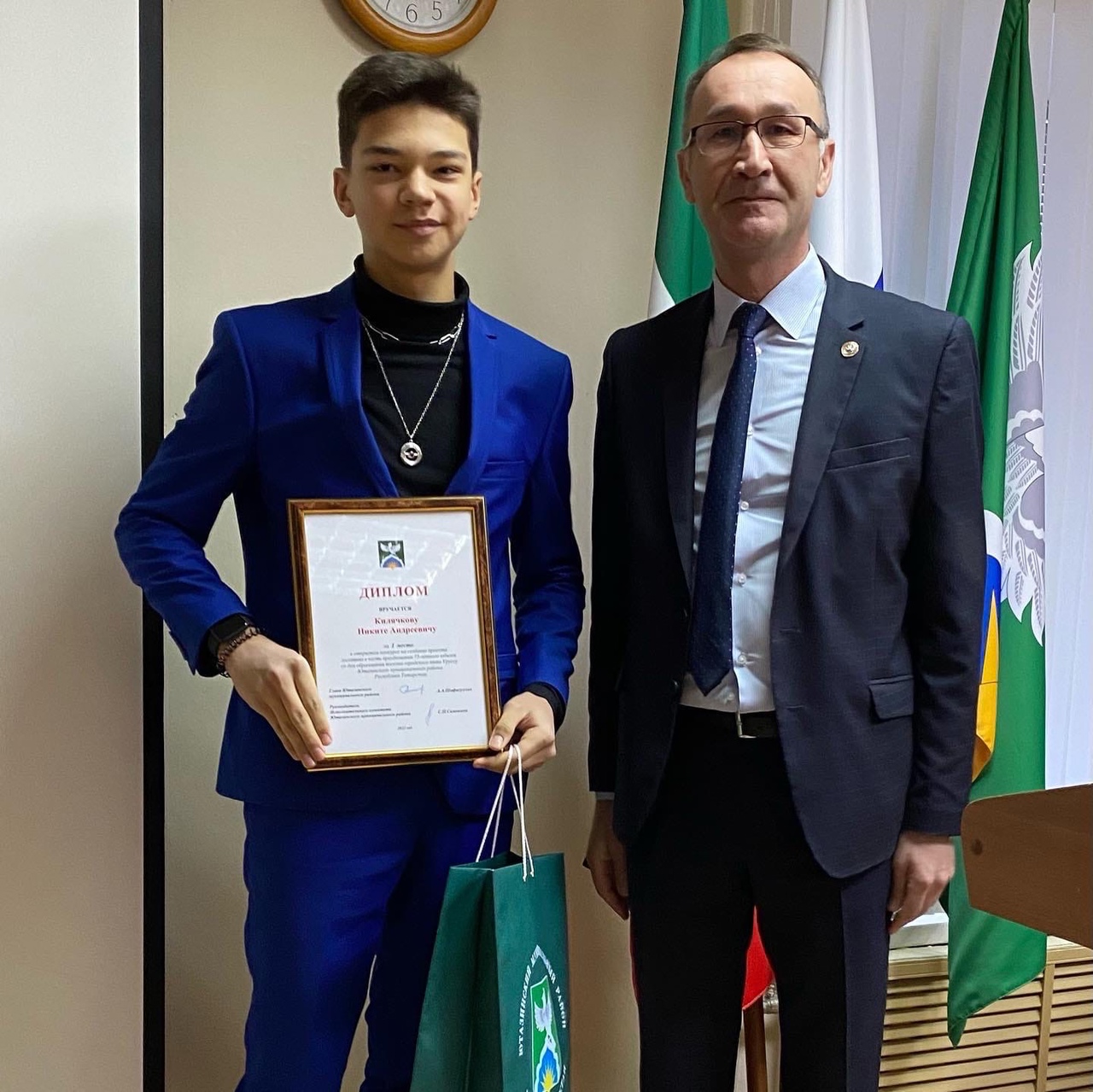 за 1 место дипломом Главы района и Руководителя Исполнительного комитета Ютазинского муниципального района награждён - Килячков Никита Андреевич.
