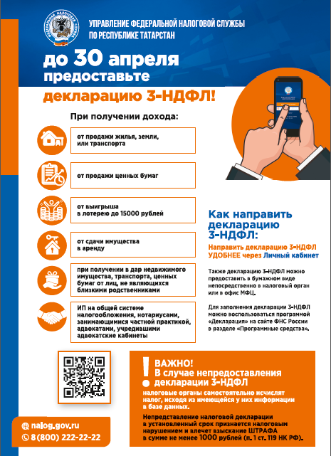 До 30 апреля необходимо предоставить декларацию 3-НДФЛ