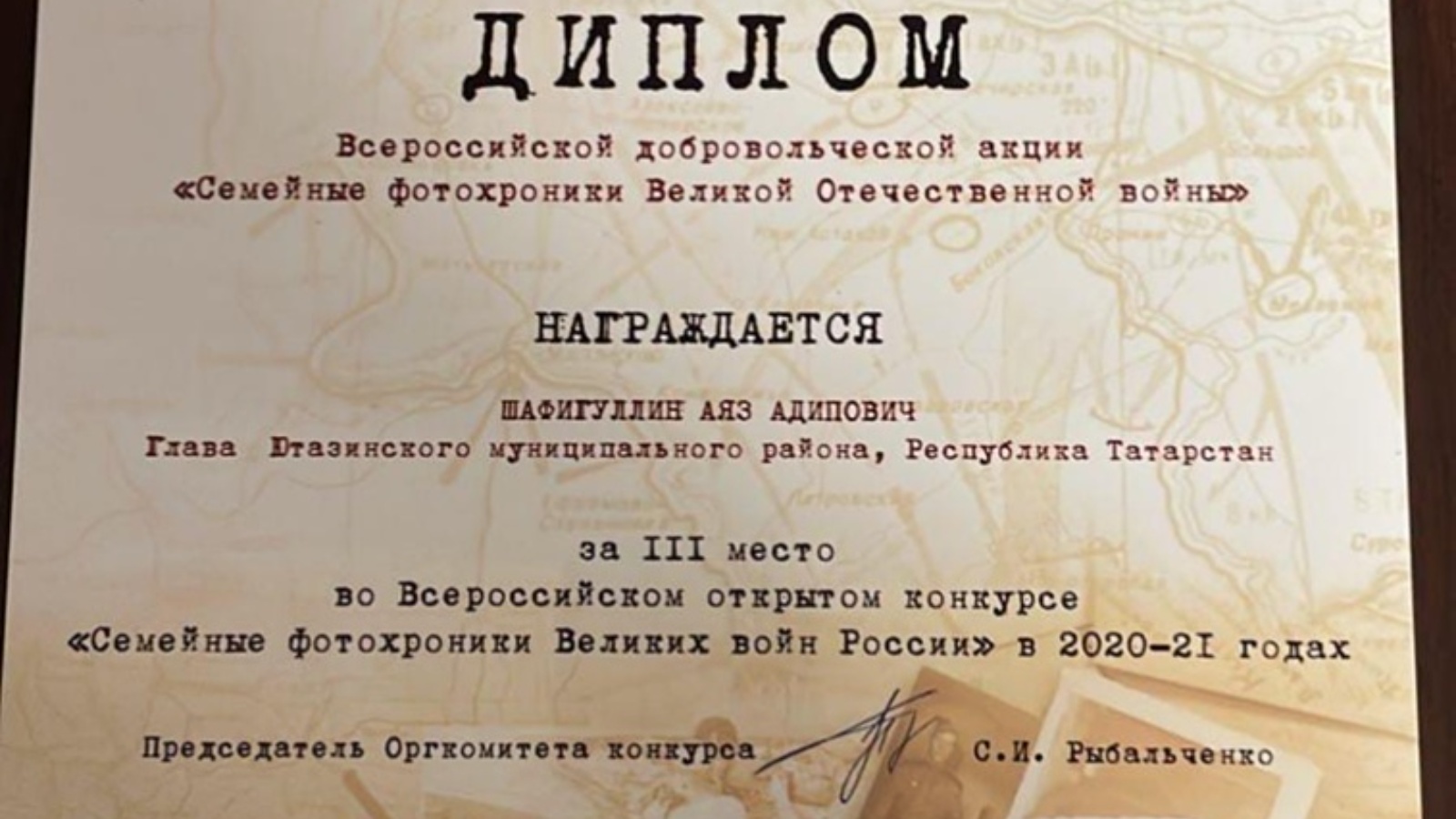Наш район, в лице главы Аяза Адиповича, занял почетное третье место во Всероссийском открытом конкурсе «Семейные фотохроники Великой Отечественной войны». Гордимся и разделяем радость победы с нашими жителями!