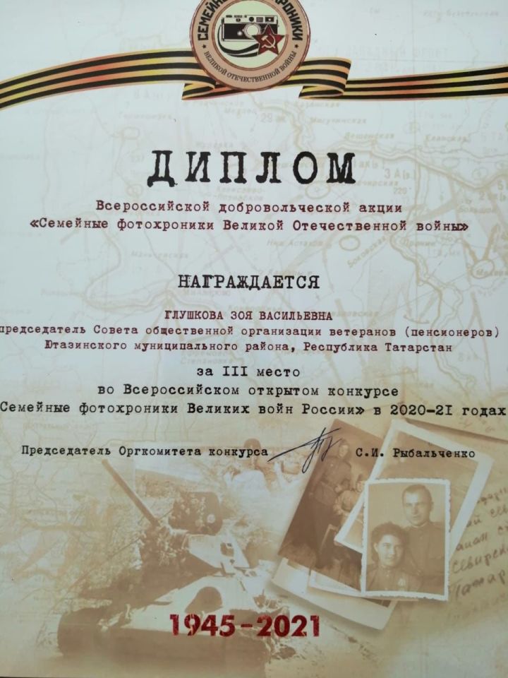 Традиционно работа еженедельного оперативного совещания руководителей отделов и служб, которая прошла под началом главы района Аяза Шафигуллина, началась с церемонии награждения. Так, по итогам деятельности районного совета ветеранов (пенсионеров) в 2020-2021 годах признана одной из лучших в Российской Федерации. Работавшая в те годы председатель районного совета ветеранов Зоя Глушкова получила диплом за третье место во Всероссийском открытом конкурсе «Семейные фотохроники Великих войн России».