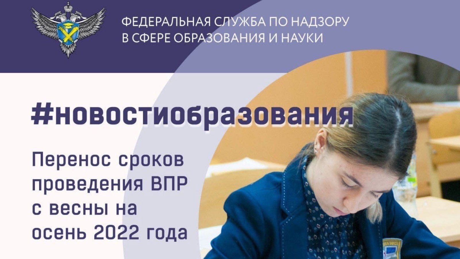 В целях снижения рисков распространения новой коронавирусной инфекции COVID-19 Рособрнадзором по согласованию с Правительством Российской Федерации было принято решение о переносе сроков проведения всероссийских проверочных работ с весны на осень 2022 года.