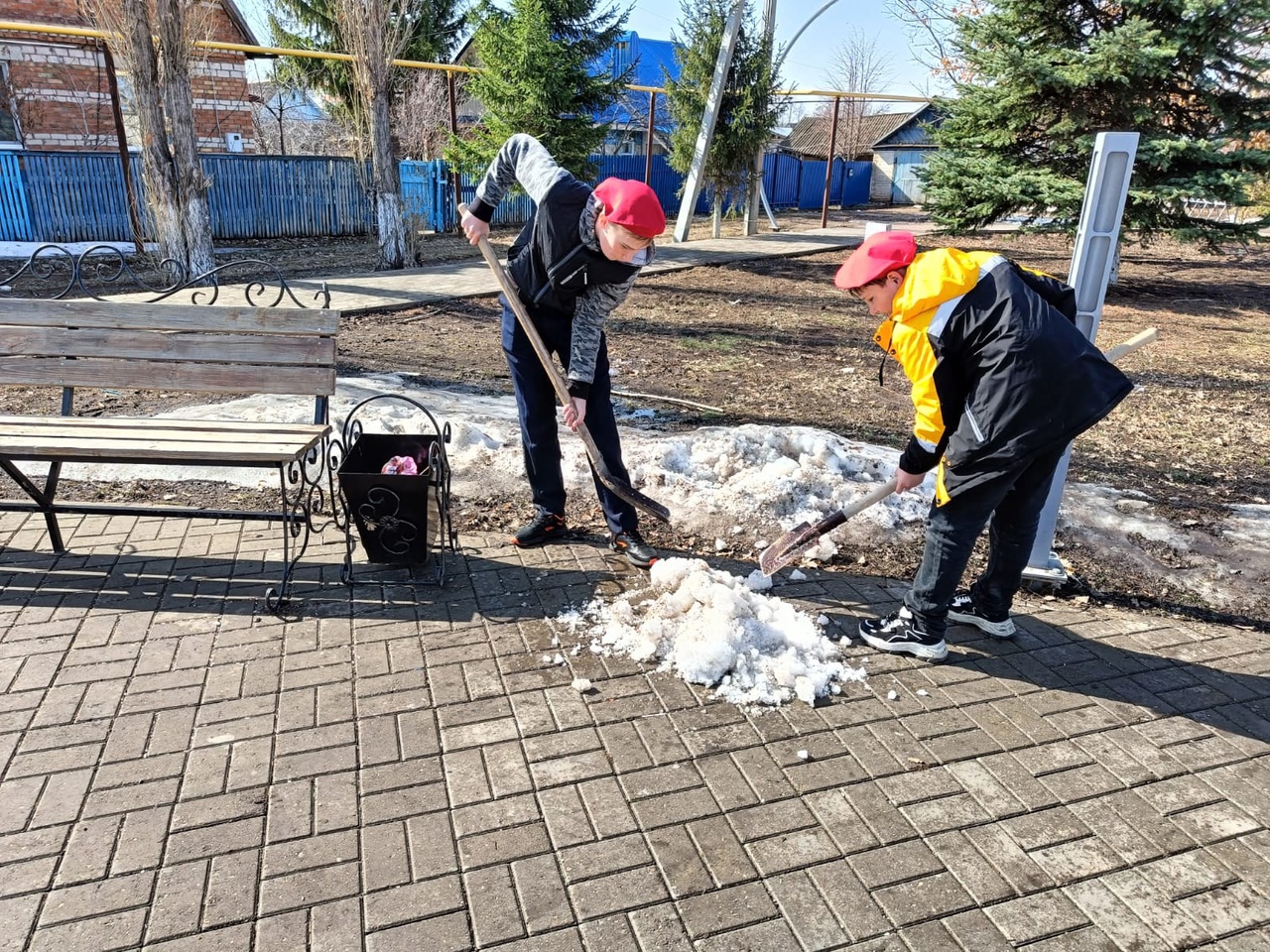 Юнамейцы Уруссинской гимназии приняли участие в акции Добрых дел и провели уборку в сквере и на мемориале в честь погибших воинов-интернационалистов