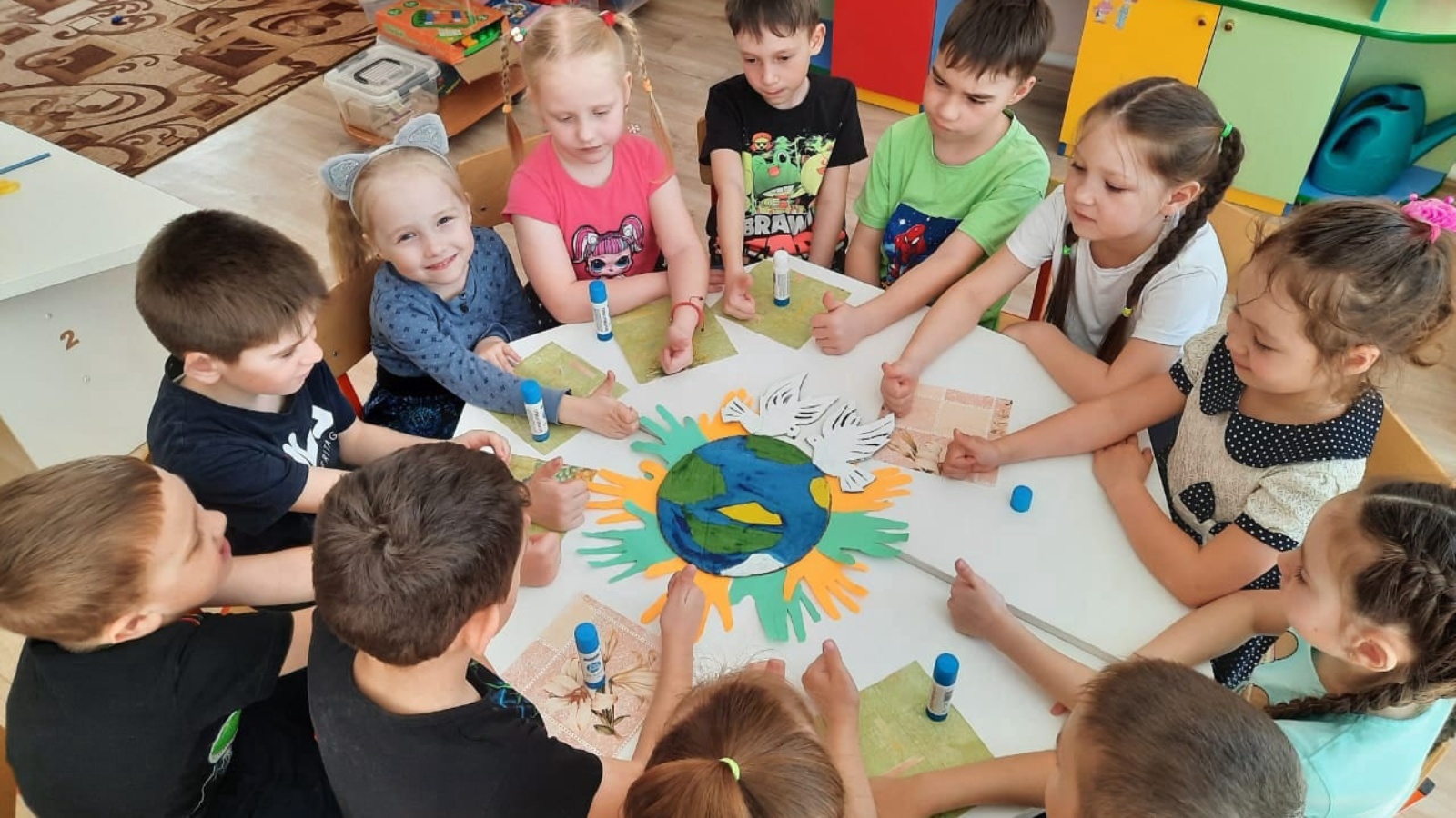 С детьми логопедической группы (педагог М. Тимошина) была проведена беседа о здоровье Планеты, ребята узнали, почему Землю называют голубой планетой посмотрели презентацию «Земля – это наш дом и мы должны его беречь». Свои эмоции ребята отразили в коллективной творческой работе "Земля наш общий дом".