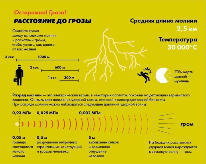 Вода — идеальный проводник электроэнергии. Молния на воде поражает не только в точке попадания, но как минимум в радиусе 100 метров.