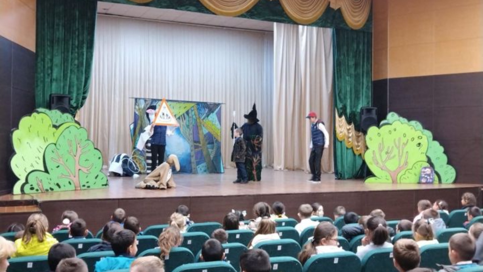 По теме безопасности дорожного движения "Патруль огненных дорог" артистами Альметьевского государственного татарского драматического театра для учащихся МБОУ "Ютазинская СОШ". Перед показом спектакля выступила начальник отделения ГБУ "БДД" в Бавлинском районе Разида Игнатьева. Она пожелала ребятам быть примерными пешеходами, помнить и соблюдать правила дорожного движения.