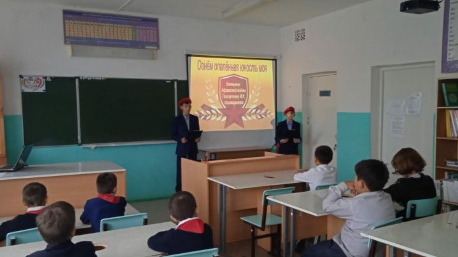 Учащимся была представлена презентация, посвященная воину афганцу нашему односельчанину Газизуллину И.К.