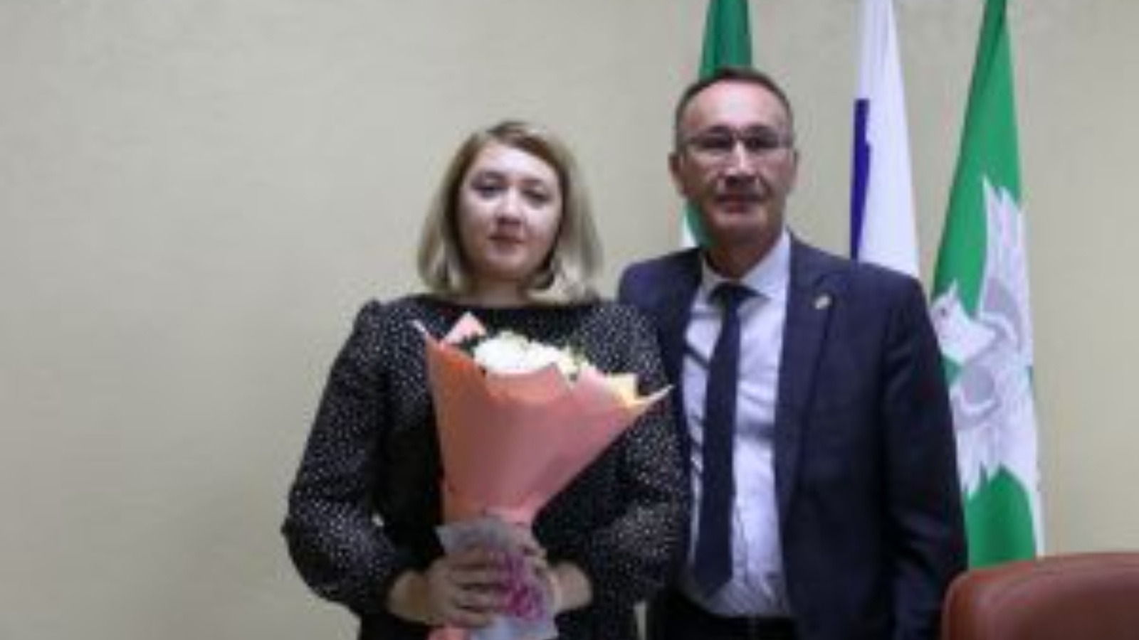 Глава района Аяз Шафигуллин поздравил начальника отдела территориального развития Айгуль Магомедову с днем рождения, адресовал ей слова добрых пожеланий и вручил букет цветов.