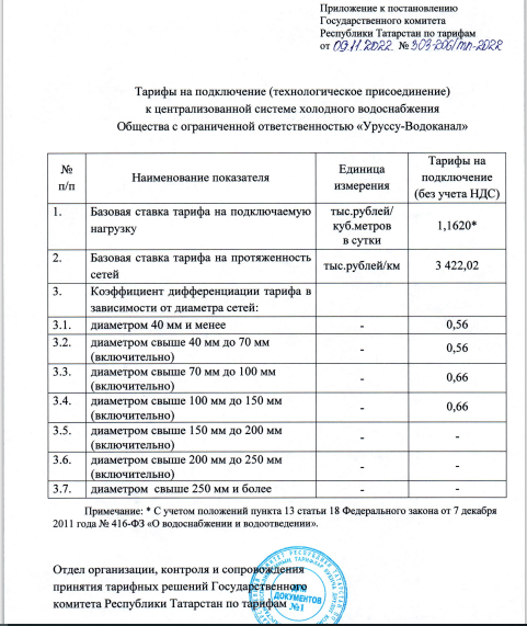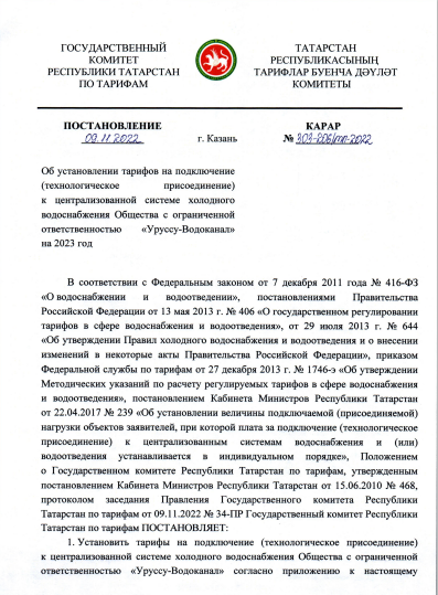 Об установлении тарифов на подключение к централизованной системе холодного водоснабжения
