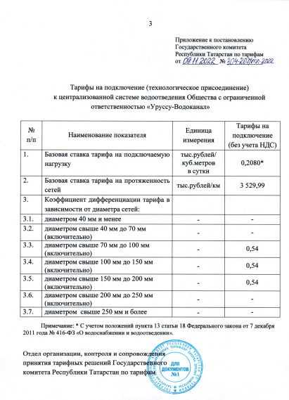 Об установлении тарифов на подключение к централизованной системе водоотведения