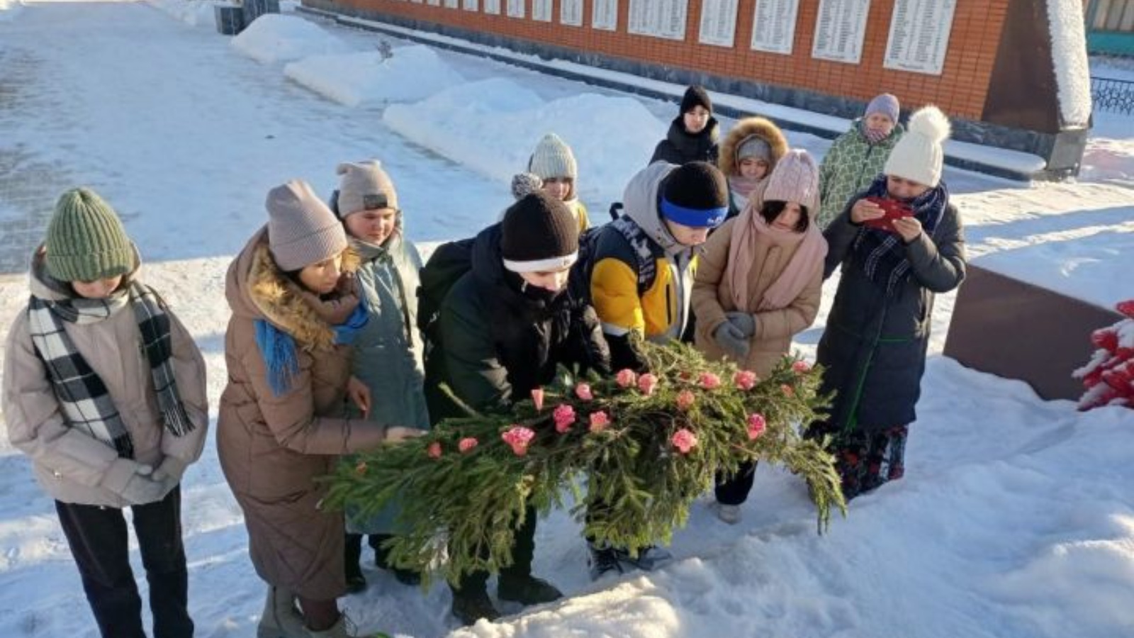 После мероприятия ребята возложили гирлянду у Мемориала, у вечного огня.